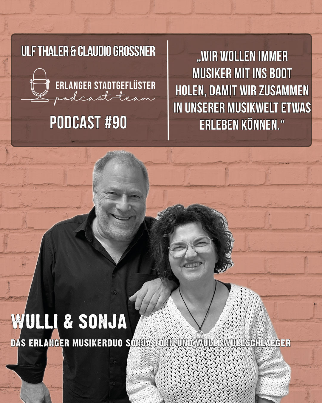 Unsere heutigen Studiogäste Wulli Wullschläger (Musiker und Erlanger Urgestein) und Sonja Tonn (Musikerin und Liedermacherin) haben wir in Erlangen getroffen. 👏 Episode #90 der Podcast-Reihe Erlanger Stadtgeflüster mit Ulf Thaler und Claudio Großner ist ON AIR! 🎙